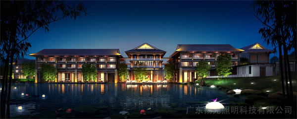 別墅區(qū)燈光定位追求一種清靜無為、天人合一的境界,與自然之間保持著和諧的、相互依存的融洽關(guān)系,反映出返璞歸真的自然觀。