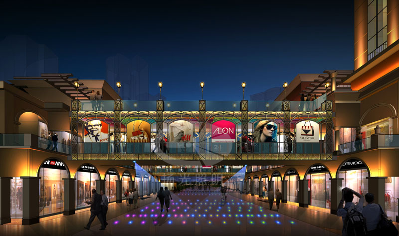 商業街戶外景觀照明——良好的商業街照明不僅可以展示商業街與城市的特色,也可以給顧客和路人留下深刻的印象,特別是對樹立商業街形象有著重要的作用。商業街需要燈光起到良好的視覺誘導性,照明的明暗分布要合理,突出重點,層次感要強,創造一個有機的整體效果。