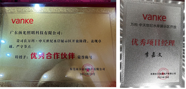 20天!僅用了20天就完成了萬科.中天世紀水岸(龍灣新城花園)展示區泛光照明工程,在公司各部門的共同努力下,無論是時間節點,還是工程的質量都得到業主方的認可。被業主方評為“優秀合作伙伴”,項目負責人也被評為“優秀項目經理”。
